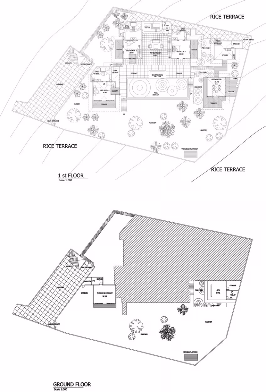Die Villa Coraffan in Canggu ist um einen 5 x 17 Meter großen Infinity-Pool herum angelegt. Jedes der 5 Schlafzimmer der Villa Coraffan bietet eine spektakuläre Aussicht. Für jedes Zimmer wurden weiße Palimanan-Steinmauern und edle Merbau-Holzböden gewählt, um die würdevolle Ruhe eines Tempels mit erdiger Wärme zu verbinden. Die Villa Coraffan verfügt über ein Open-Air-Wohnzimmer mit Bar. Zu den weiteren Gemeinschaftsbereichen gehören eine separate Aussichtsplattform, die sich ideal für die Morgenmeditation oder Yoga eignet, und ein separater Essbereich, der von Balkonen umgeben ist. Das klimatisierte Fernsehzimmer der Coraffan verfügt über ein komplettes Badezimmer und kann als fünftes Schlafzimmer genutzt werden. Coraffan verfügt außerdem über eine voll ausgestattete Küche mit Personalunterkünften und einen Parkplatz mit Sicherheitsposten.