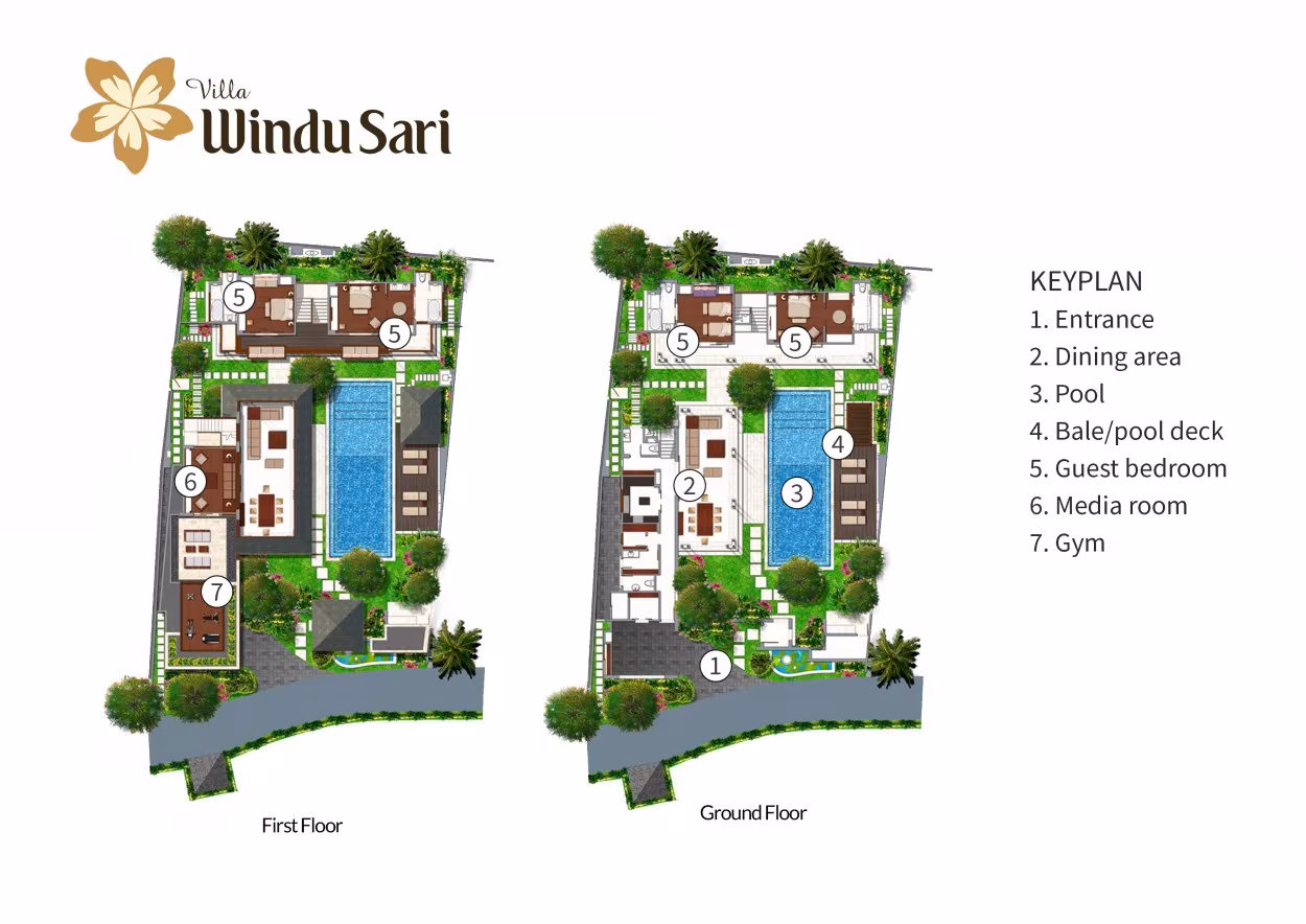 Вилла Windu Sari – что в переводе означает «прекрасное место во времени» – это тихий оазис в Петитенгете, на юго-западном побережье Бали. Спроектированная всемирно известным архитектором Гленном Паркером, с интерьером от Дина Кемпнича, ландшафтным дизайном от Анто Куснанто и освещением от Пола Тёрнера, эта вилла поражает обилием тикового дерева и мрамора. Вилла Windu Sari с 5 спальнями отличается роскошной отделкой из тикового дерева и мрамора. Она состоит из двух павильонов с черепичными крышами, которые включают в себя великолепную открытую гостиную и обеденную зону, террасу для развлечений, тренажерный зал, пять спален на двух уровнях, кухню и зону обслуживания. Вилла Windu Sari расположена в очаровательном закрытом саду с впечатляющим бассейном и находится в безопасном и охраняемом частном поместье. Она идеально подходит для семей с детьми постарше.
